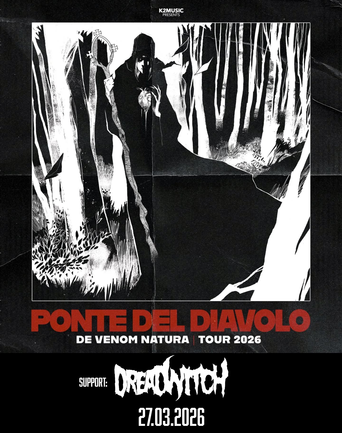 DREAD WITCH utilizes an immense wall of sound born of low tuned guitars (three, to be exact), distorted bass, crushing drums, ritualistic vocals and ambient textures to create an immersive sonic experience in an occult universe of serpents, witches and human sacrifices.